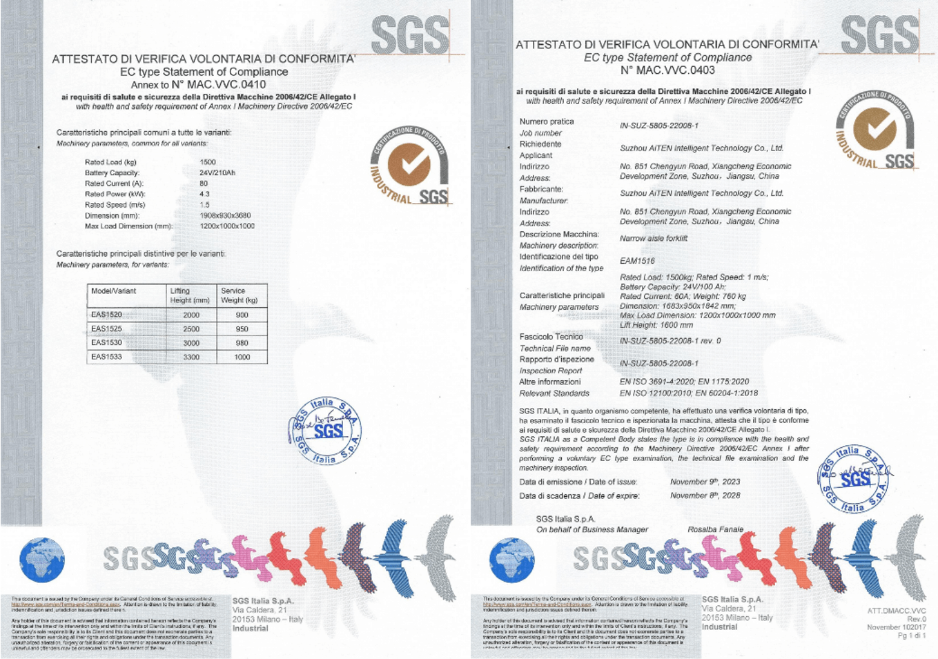 3. CE 标志(欧盟): 确保符合机械指令,强调对繁忙仓库等动态环境的风险评估,在这些环境中,叉车与行人和手动设备相互作用。为满足欧洲市场的法规要求,leyu.com产品经过严格审核,为包括 MP10、AM1516、AE15、AS15 和其他产品在内的 AGV 产品获得了欧盟 CE 证书。